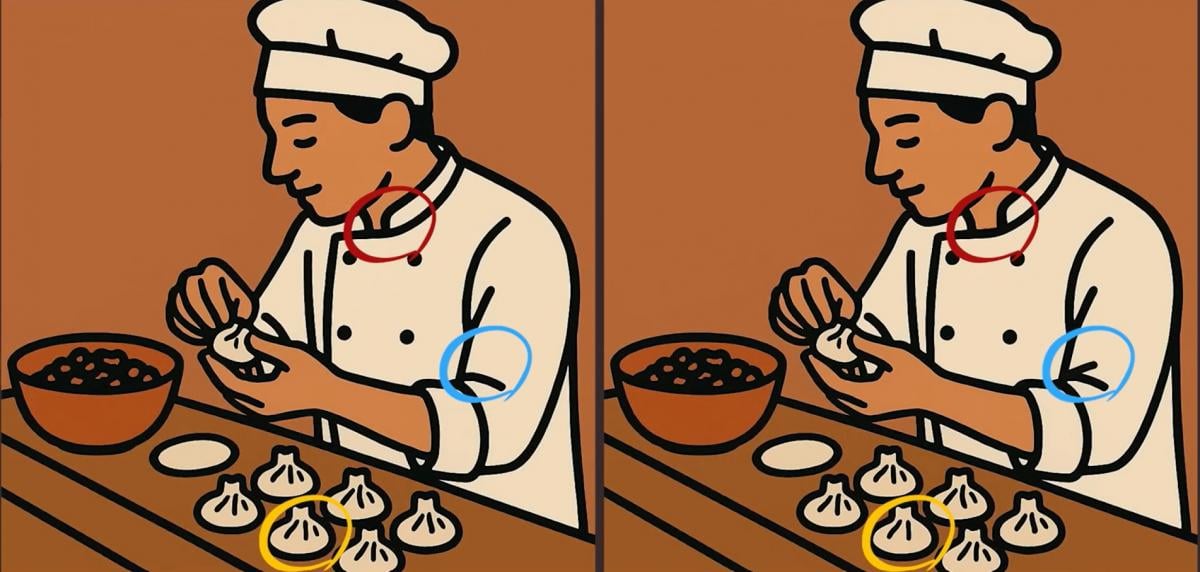 Ben je klaar voor de volgende uitdaging? Kijk eens goed naar twee afbeeldingen van een kok aan het werk. Op het eerste gezicht zien ze er misschien hetzelfde uit, maar er zitten 3 kleine verschillen in verborgen. Denk je dat je ze allemaal kunt vinden in 31 seconden? Probeer het en test je visuele scherpte!