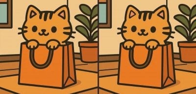Ben je klaar voor de volgende uitdaging? Kijk eens goed naar twee afbeeldingen van een schattige kat die in een papieren zak zit. Op het eerste gezicht zien ze er misschien hetzelfde uit, maar er zitten 3 kleine verschillen in verborgen. Denk je dat je ze allemaal kunt vinden in 45 seconden? Probeer het en test je visuele scherpte!