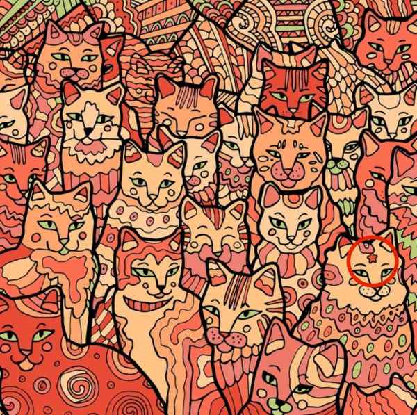 Op het eerste gezicht lijkt het alsof de afbeelding alleen maar uit katten bestaat. Maar als je goed kijkt, zie je dat de ster over de hele scène verborgen is. Dus, ben je klaar om je onder te dompelen in deze afbeelding en je hersenen uit te dagen om binnen 9 seconden de ster tussen de katten te vinden?